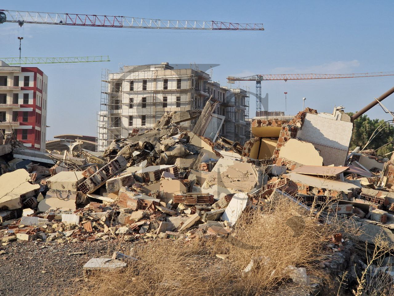 In queste foto si vedono distintamente le macerie degli edifici che c’erano precedentemente e la costruzione dei nuovi condomini praticamente sulla stessa area.